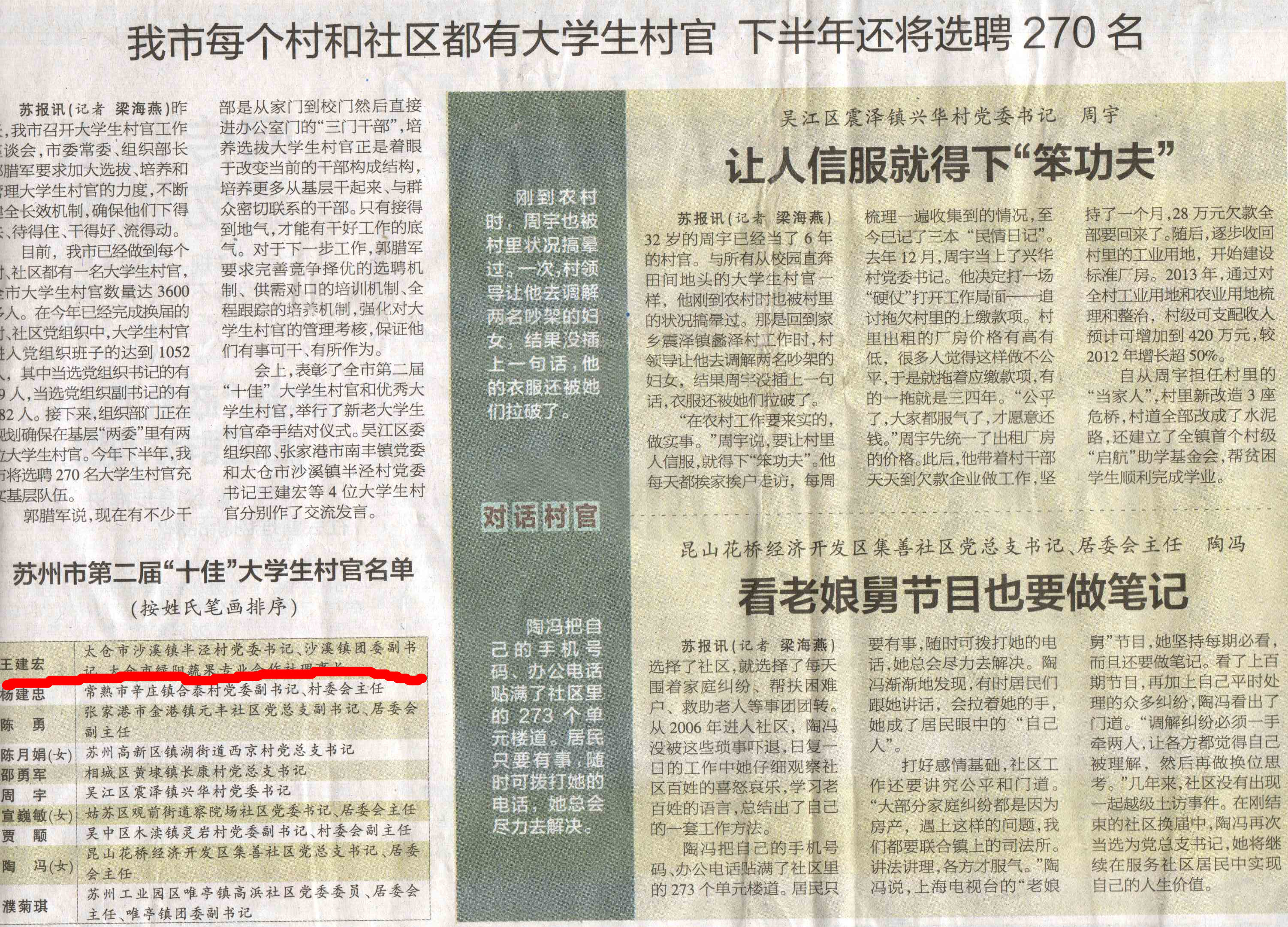 苏州日报对王建宏他们的事迹进行报道