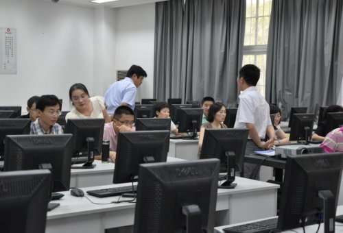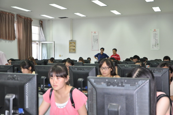 孔祥沛与李峻峰两位专家在我院教务处处长胡荣、信息中心主任冷飞的陪同下,组织我院英语专业10余名自有专职教师、100名学生进行了师生满意度调查,并参观了我院语音教室等教学场地。
