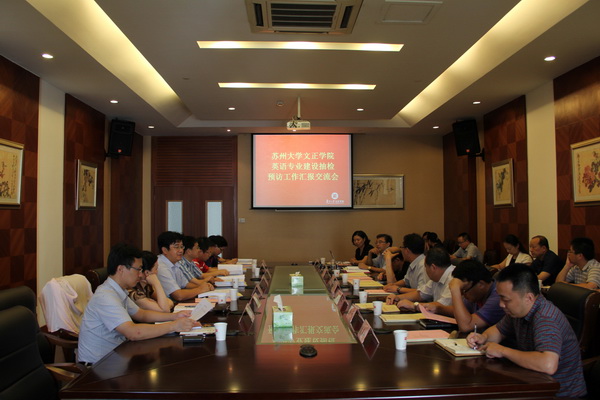 (翠文报记者:张晗玥/文 张杰/图)9月16日下午,江苏省教育评估院副院长袁益民、主任孔祥沛、李峻峰一行来我院进行了英语专业建设抽检预访。我院在学生活动中心召开了英语专业建设抽检预访工作会议。我院院长殷爱荪、常务副院长吴昌政、党委书记徐子良等全体院领导班子成员出席会议。本次会议由副院长施盛威主持。苏州大学外国语学院分管教学的副院长、文正学院外语系主任朱新福教授及英语专业骨干教师王海贞老师以及我院各职能部门负责人及相关教学管理人员参加会议。