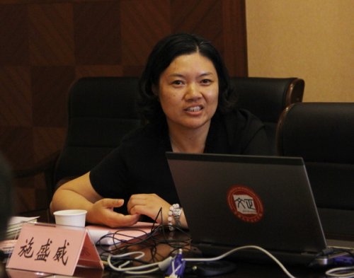 施盛威介绍了我院现有专业学科分布情况和学院近期专业发展规划,尤其介绍了学院在“以评助建”的理念指导下,推出的专业建设和教学改革的新举措。比如:本学期推出的 “大学英语”课程助教制度,以及总结拓展海外游学与交换生项目的制度保障与语言训练并行的新方案。充分整合师资和资源,加强语言技能训练,以达到语言交流平台常态化,语言训练活动品牌化。同时,她也指出了目前英语专业建设中存在的不足,如进一步改善英语专业实验室条件;在教学中强化学生学习的主动性,提高专业八级通过率等。她表示,学院会针对存在问题,及时调查研究,科学规划,采取合理措施,真正做到自评、自改、自建。