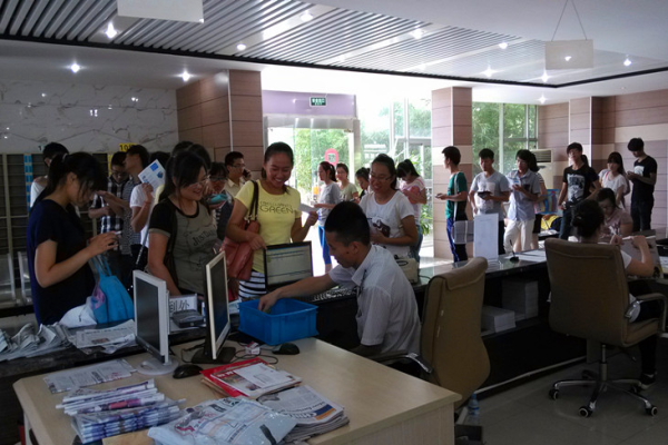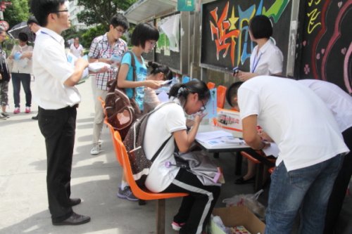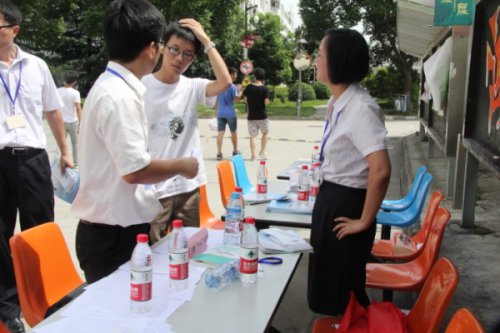工作人员耐心解答学生的问题