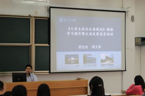 10月9日下午,招生处对2013级生涯发展委员进行首次培训,招生处处长周文军首先介绍了职业生涯规划的基本内容,并具体部署了2013级《大学生职业生涯规划》课程的学习任务和要求,最后明确指出了生涯发展委员的职责和工作内容。