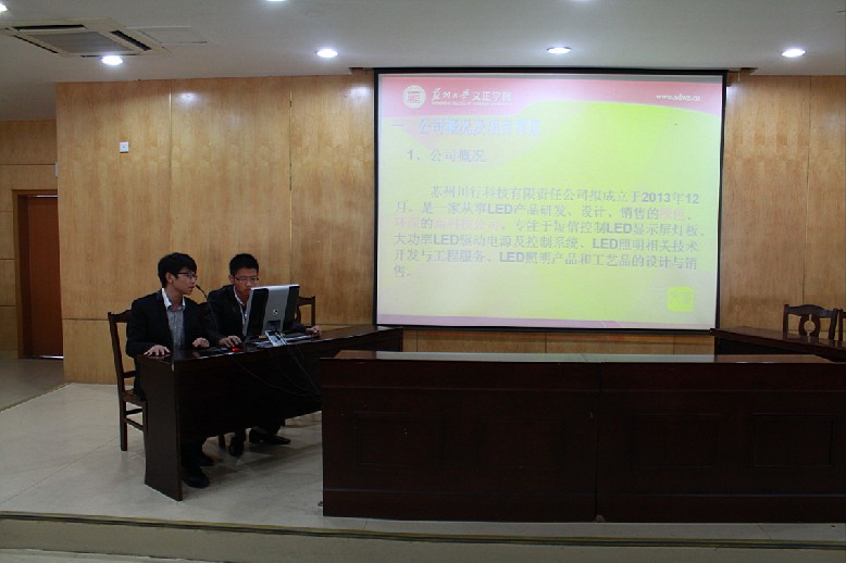 经过两轮的激烈竞赛,最后苏州川行科技有限公司代表队胜出,荣获本场初赛的优胜奖,并代表文正学院参加“2013年苏州市青年(大学生)创新创业专项竞赛” 高校组复赛。