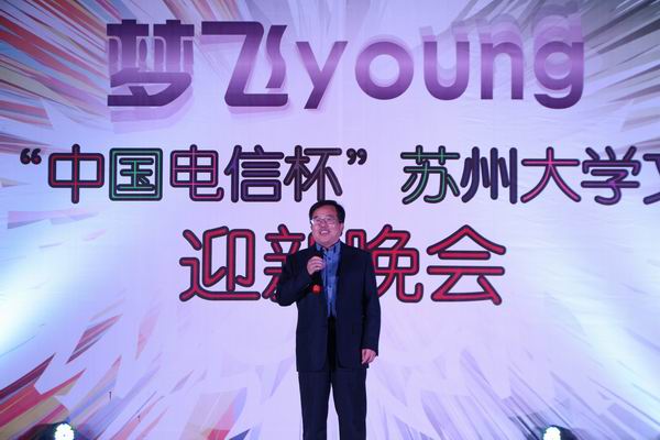 (翠文报记者:江雪 朱鸣霜/文  贺汀 黄征/图)10月16日晚6:00,由我院团委举办的2013年“中国电信杯”迎新晚会在篮球场火热亮相。院党委书记徐子良、院长助理袁昌兵、学生工作处处长卞海勇、团委书记祁素萍以及吴中区电信局工会主席芮文新等嘉宾和同学们一同观看了演出。