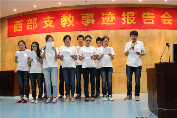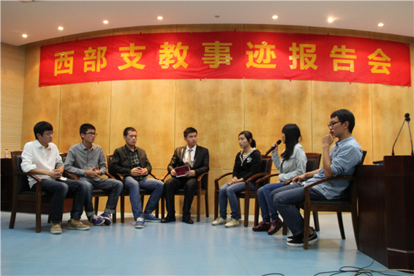 10月18日晚5:00,由我院团委社会实践部举办的2013西部支教事迹报告会在学生活动中心201举行。信息中心副主任、2013“爱·黔行”贵州支教团队带队老师徐进华、团委副书记袁艳出席了报告会。