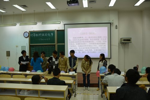 (陈向露/文 邹刘嘉/图)10月23日下午5:30,由计算科学系团总支、学生分会举办的第二届计算机知识竞赛在教学楼2-101室如期举行。计算科学系共百余名同学参加,指导老师魏秋江到场观看了比赛。