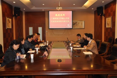 10月25日上午,广西科技大学鹿山学院教育教学督导组组长刘汉生一行六人来访我院,就教学督导部门建设、教学质量监测等方面进行考察交流。交流会在学生活动中心204举行,我院副院长施盛威、教务处处长胡荣、教学督导组组长邹丽新等老师出席会议。会议由施盛威主持。