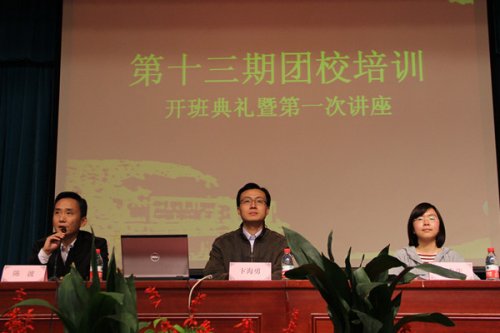 10月25日下午6:30,由我院团委团校部主办的第十三届团校培训开班典礼暨第一次讲座在学术报告厅顺利召开。我院学生工作处处长卞海勇、团委书记祁素萍、思想政治教育中心主任陈波出席了本次讲座。