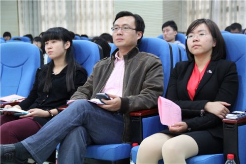我院2013“爱•黔行”贵州支教团队成员代表王硕与城市慢行系统规划及成效调研团队负责人周张磊分别上台发言。他们以简明生动的语言述说了自己的实践经历,并与台下的同学交流互动,分享自己的经验与心得。