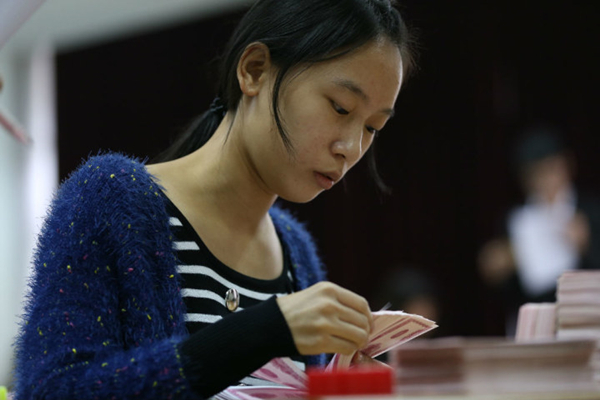 此次个人决赛冠军得主徐静所采用的四指点法与其他同学培训时所采用的单指点法不同,四指点法大大提高了点钞效率。据徐静介绍,她之前学习过点钞技能并曾获得江苏省财会技能大赛一等奖,平时也经常进行点钞的练习与探索,并在赛前做了充分的准备。