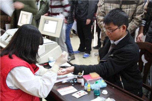 上午10:30,献血活动在学生活动中心105、106拉开序幕,青年志愿者管理部认真做好各项前期准备工作,从填写个人资料,身份证登记,再到血压测量、血型鉴定,志愿献血的同学们在现场醒目标识的指引下,在团委工作人员的热情帮助下,有序地按步骤完成了献血前的准备工作。经过各项测量之后,符合献血要求的同学们进入106教室,进行最后的抽血环节。