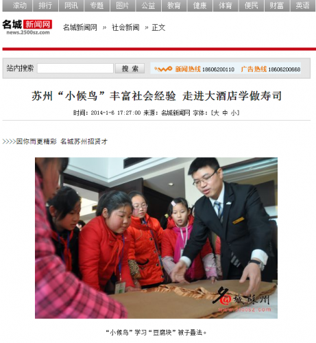 名城新闻网讯(记者 沈晴)如何叠出方方正正的“豆腐块”被子、如何正确使用吸尘器;如何制作美味可口的寿司……今天(1月6日),吴中区越溪育才学校外来务工人员子女,在苏州大学文正学院青年志愿者帮助下,走进威联豪生大酒店,体验学习生活的基本技能。