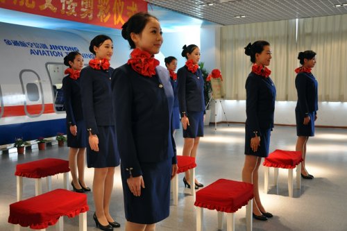 我院空乘专业学生以礼仪操、安全演示等形式向来宾及与会师生展示了所学专业技能,受到焦殿成一行的肯定和赞许。随后,双方领导在掌声中进行了剪彩揭牌仪式。
