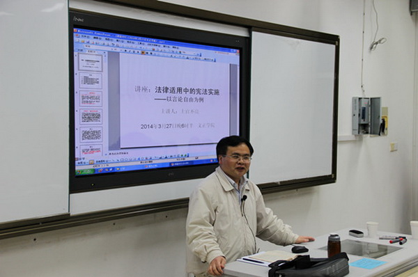 (文正法学 何哲昱/文 李松/图)3月27日晚,苏州大学王健法学院上官丕亮教授应邀来到我院,为法学系的学生们开展了一场主题为 “法律适用中的宪法实施——以言论自由为例”的学术讲座。