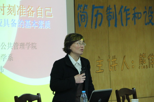 (管理系学生 陈花花/文 王婷婷/图)4月2日晚,苏州大学政治与公共管理学院副教授熊伟来到我院,为我院管理系的学生们带来了一场“简历制作与设计”专题讲座。该讲座作为我院“2014年就业指导系列活动”之一,深受广大学生的欢迎,前来聆听讲座的学生多达200多名。