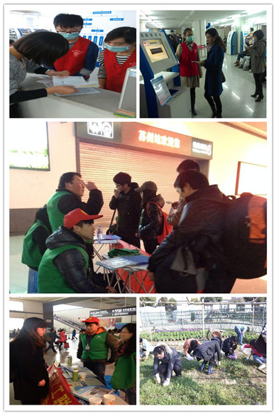 志愿者开展医院志工指引、车站导乘、校园除草志愿活动
