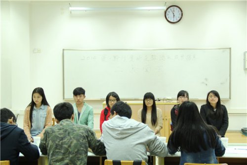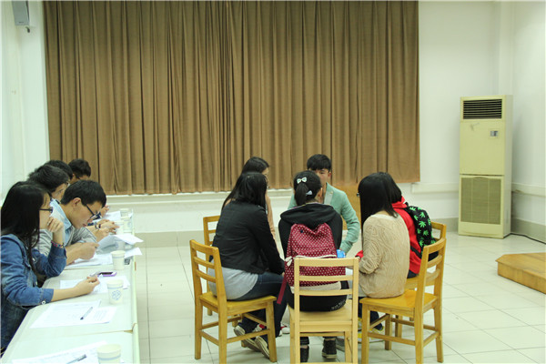 经过第一轮面试的自我介绍和创意提问环节,二轮面试中同学们不再拘束。面试者6人一组,每个人都要完成自我介绍、小组讨论和评委提问三个环节。在小组讨论中,各小组针对抽到的题目,畅所欲言,分析并提出了很多独具特色的观点和方案。组长发言后,其他组员更是积极参与,提出了很多具有建设性的补充建议,团队合作精神得到了充分展现。