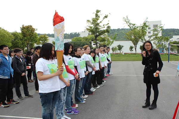 火炬传递持续了一个小时,火炬手队伍在各宿舍楼下穿梭,形成了一道亮丽的校园风景线,吸引了不少同学驻足观看。随着宿舍楼号的递增,火炬手队伍也逐渐增长,寓意着越来越多的同学加入到集约的队伍当中。当火炬集满15枚水滴、灯泡卡片后,队伍返回排球场,与在场学生代表共同宣读了校园集约倡议书,朱旭宣布本次集约之星评选活动正式启动。