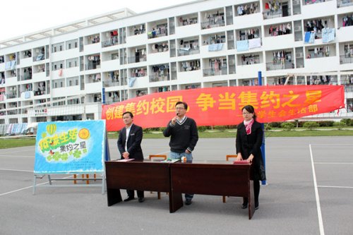 (翠文报记者:张丹/文 周雨晴/图)4月23日下午三点,宿舍“集约之星”评选活动在15号学生宿舍楼前的排球场举行了启动仪式。该活动以“创建集约校园,争当集约之星”为口号,由我院学生会生活部举办。学生工作处处长卞海勇、科桥物业公寓部经理朱旭、学生会生活部指导老师曹竞雄出席了本次活动。