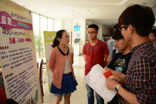 2014年5月21日下午1:30,由我院就业处组织的“江苏省百校联动——苏州大学文正学院校园招聘会”在学生活动中心一楼大厅成功举办。江苏汇天商务有限公司、上海春森集团等99家单位参加了本次招聘会,提供了销售、文员、设计师、储备、前台、人事等在内的1200余个工作岗位。我院2014届、2015届近200名学生参加了招聘会。