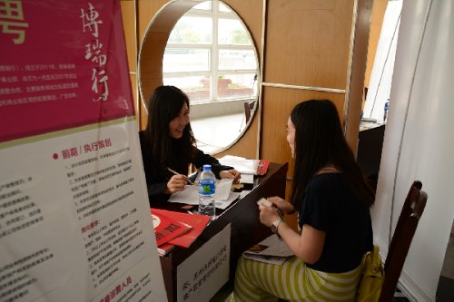 招聘会现场,很多企业也带来了实习生岗位,2011级英语专业的颜丽芳是第一次来参加招聘会,她说:“我希望通过这次招聘会找到暑期实习的岗位,同时想了解一下本专业现在的就业形势。”她表示自己比较看中企业的发展前景。