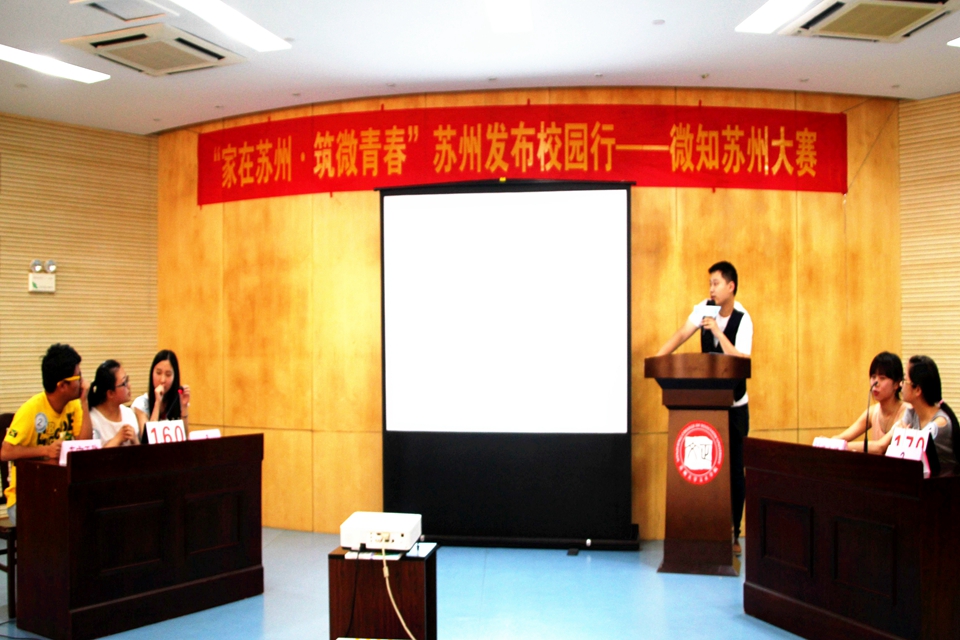 5月28日下午,“家在苏州,筑微青春”苏州发布校园行——微知苏州大赛在学生活动中心举行。活动由苏州市人民政府新闻办公室、名城苏州网主办,我院新闻中心承办。苏州市人民政府新闻办公室田星女士、名城苏州网张莉女士及我院邢超老师出席活动。