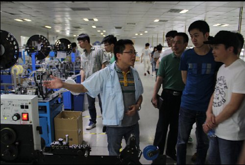 上午10点,走访团队顺利抵达杰顺通精密组件有限公司。该公司主要从事电子、IT行业的零件制造,是昆山民营企业中的创业典范。公司总经理王项明先生对参观团的到来表示热烈欢迎,并就企业的发展现状、企业的人才需求及员工的发展空间等方面做了介绍。随后,在研发部经理邓红波带领下,大家参观了行政办公室、生产车间和装配流水线。