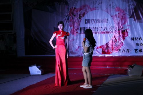 (翠文报记者:项晨佳/文 曹彧飞/图)5月28日18时,由艺术系团总支、学生分会主办的第六届“创衣领袖服装设计大赛”在大学生活动中心门口拉开帷幕。出席大赛的嘉宾有:2012级服装设计与工程专业班主任蔡琳,学生工作处指导老师魏秋江,艺术系团总支、学生分会指导老师何玉。