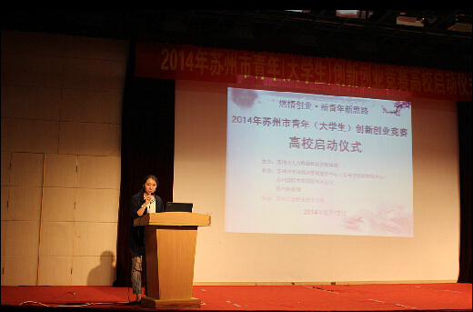 2014年6月17日,由苏州市人力资源和社会保障局主办,苏州市劳动就业管理服务中心、苏州国际教育园管理办公室和现代快报网承办的“苏州市青年(大学生)创新创业竞赛(高校组)启动仪式”在苏州工业职业技术学院隆重举行。