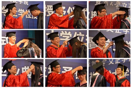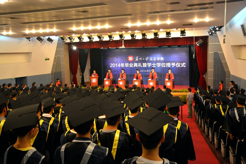 经学院第一届学士学位评定委员会第四次会议讨论通过,首批1775名学生获得苏州大学文正学院学士学位证书。2014届毕业生薛雯、张帆、刘婷、申进作为优秀毕业生代表上台发言,并与全体毕业生共同宣读毕业誓词。“崇尚科学,追求真理,为祖国的富强不辞劳苦,为民族的复兴奋斗终身”,字字箴言既是毕业生与自己的约定,也是对母校师长和祖国人民的承诺。