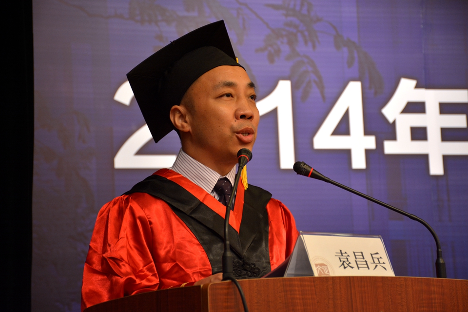院长吴昌政致辞。二〇一四届学成毕业,适逢文正建院十五周年的重要时刻,因此多了一份特殊的意义。他引用范文正公的三句名言“不以物喜,不以己悲”、“宁鸣而死,不默而生”、“先天下之忧而忧,后天下之乐而乐”,寄语各位毕业生从容面对人生得失、独立思考勇敢表达、心系国家关爱社会。