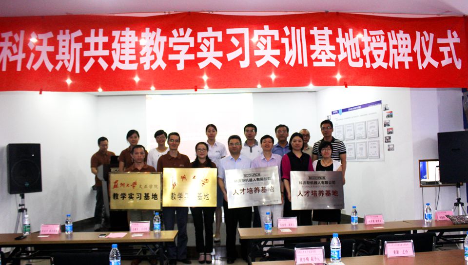 近日(7月7日),苏州大学与科沃斯共建教学实习实训基地授牌仪式在苏州科沃斯机器人有限公司举行。在科沃斯公司成为我院及电子信息学院教学实习基地的同时,我院与电子信息学院也成为科沃斯公司的人才培养基地。