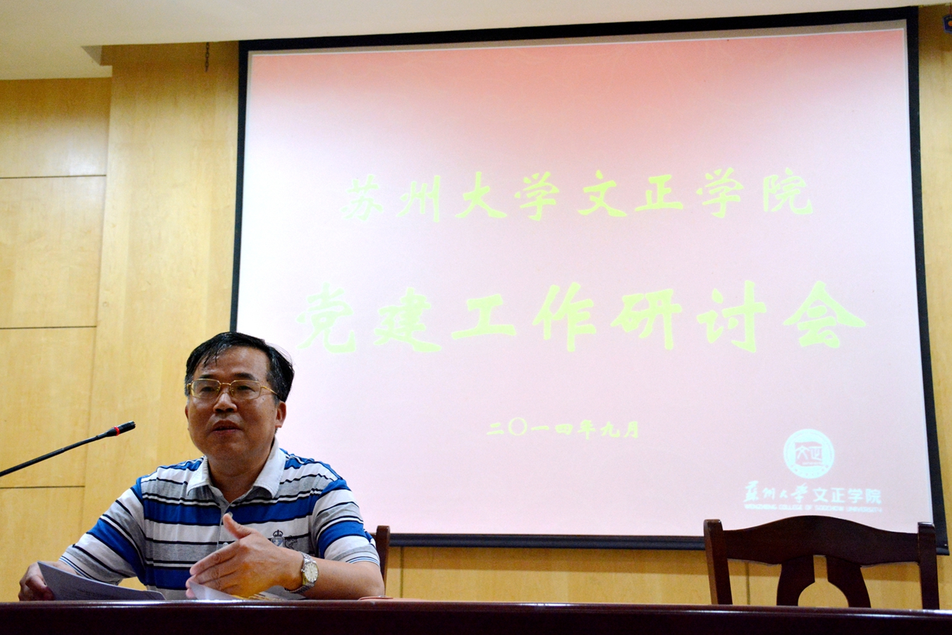 为深入践行党的群众路线教育实践活动精神,发挥党支部的战斗堡垒作用,9月5日下午,学院组织召开2014年党建工作研讨会。学院党委委员、兼职组织员以及各党支部书记共四十人参加此次研讨会。会议由党委副书记仲宏主持。