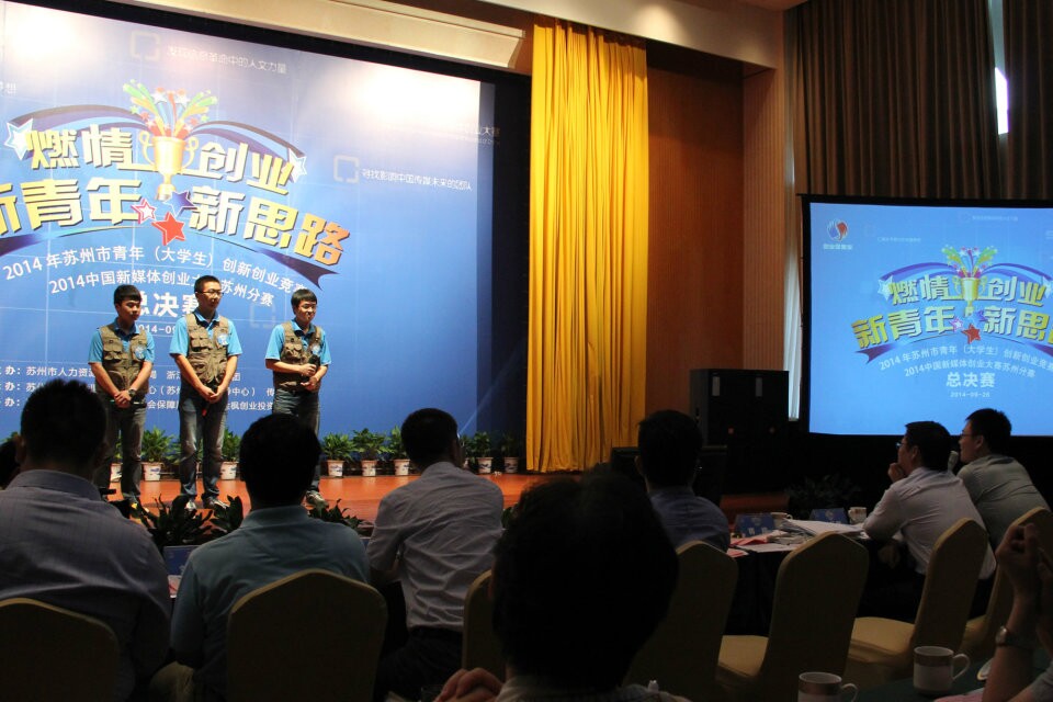 比赛开始前,苏州市人力资源和社会保障局和浙江日报报业集团领导为赛会致辞,阐述了“燃情创业——新青年新思路”的大赛主题,给青年创业者以充分的肯定和积极的鼓励。由复赛脱颖而出的18支创业精英团队(其中6支团队来自在苏高校,12支团队选自社会创业组织),来到位于苏州市吴中区商务中心的比赛现场。他们或带着自己的创新产品及标语口号,或组织了强有力的啦啦团队,展开了一场台上台下互动热烈的角逐。各队充分利用比赛规定的(项目介绍和评委提问)两个环节,详细介绍自己的创新产品,充分展示了自己的创业团队。