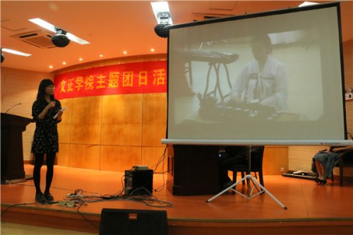 丁瑜作为团支书代表发言。她认为,全班同学的辛勤付出是办好活动必要条件。她还邀请大家共同欣赏“青春中国梦,多彩服饰情”的主题团日视频集锦。活动以茶艺、古典舞和苏州小曲点缀其间,生动的展示了我国历史各个时期的服饰,充满了浓浓的历史韵味。