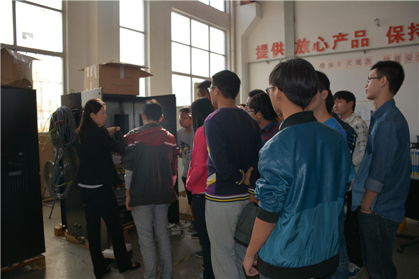 在实习过程中,学生们按照实习指导教师们的安排,首先听取了企业工程技术人员简单介绍各产品的控制原理、应用技术及进入车间后的相关注意事项;接着,在工程技术人员和老师的带领下,大家对产品生产线进行参观。