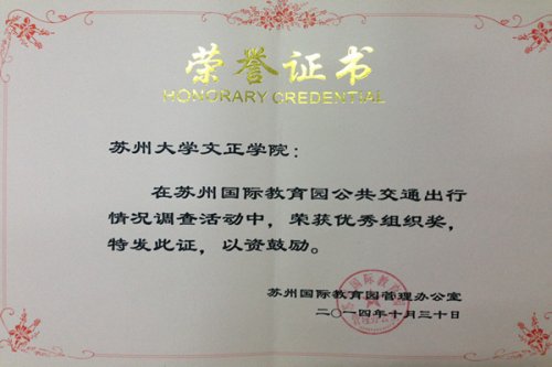 为更快、更好服务师生出行,市交通局和市公交公司拟对教育园公交线网进行全面的排摸和优化,经教管办推进落实,10月8日至2014年10月22日正式进行了教育园各入驻院校师生出行情况调查。经统计,截止10月22日24点,教育园共有8960名师生接受调查,其中,我院共1377人参加此次活动,荣获优秀组织奖。