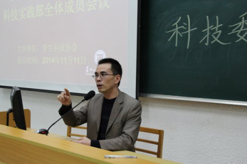 (胡月/文 陈灵光/图)2014年11月11日17:30,我院科技委员大会在教学楼3-101顺利召开。出席本次会议的有我院科研竞赛服务中心主任高志斌、学生科技协会指导老师张泽华、学生科技协会主要学生干部以及全院科技委员。