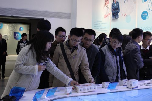苏州高新区医疗器械产业园是联合中国科学院苏州生物医学工程技术研究所共建的国家级专业医疗器械产业园,汇集从事生物医学工程和生物医药研发的企业和工程技术中心,引进国家级权威检测和评估机构,聚集高科技医疗器械企业。在这里,同学们参观了30多家入驻企业的高科技医疗器械产品,并对该产业园的技术背景、发展历程等方面进行了解。