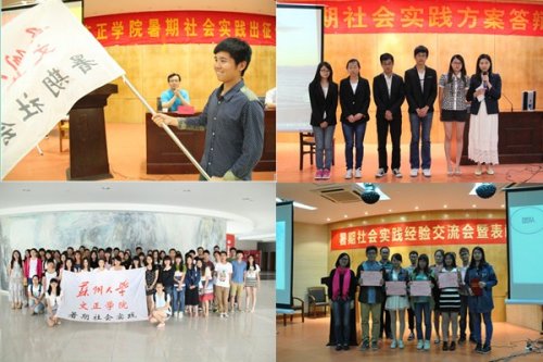 日前,在2014年度苏州大学暑期社会实践总结评比中,我院“暑期英国爱尔兰研修团队”等8支团队被评为“苏州大学暑期社会实践优秀小分队”;《海峡两岸文化差异探究:同中求异的文化中国》等5篇调查报告被评为“优秀社会调查报告”;“明基医院”、“友新街道”被评为“优秀社会实践活动基地”;戴鹏飞等55位同学荣获“先进个人”;袁艳、魏秋江、何玉获得“优秀指导老师”荣誉称号;我院被授予“苏州大学2014年暑期社会实践优秀组织奖”。值得一提的是,我院“‘爱•黔行’贵州支教团队”被评为江苏省优秀团队。
