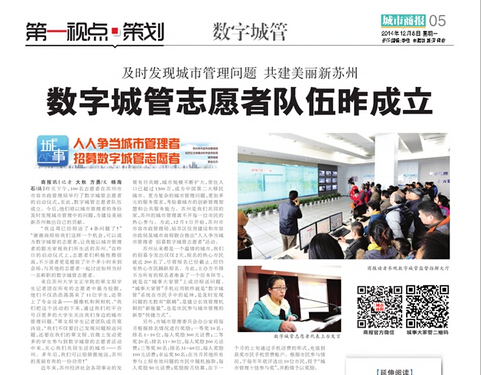 (翠文报记者:时冉/文)“我们会以我们的方式来为苏州的美丽尽一份力!”昨天(12月7日)下午,《翠文报》社应邀前往苏州市市容市政管理局参加了数字城管志愿者启动仪式,主编莫诗作为志愿者代表发言。