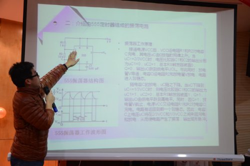 本次比赛前后历时一个多月,600余位选手经过初赛和复赛的层层选拔,一路过关斩将,最后进入决赛答辩的选手有41人,分为12组。比赛主题为用555集成定时器组成两种频率交替的音响电路,每组派代表作5分钟的答辩,围绕设计方案、器材元件、工作原理及性能展开阐述。2012级电子信息科学与技术专业的胡涛政、姜奇伟以及2013级光电信息科学与工程专业的夏鹏飞凭借优秀的作品设计和现场答辩荣获一等奖。