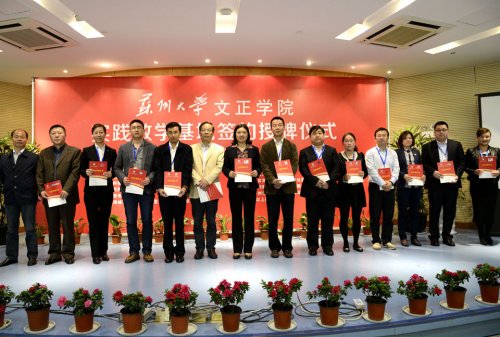 副院长施盛威与实践教学基地代表交换了共建协议书文本,院党委书记徐子良位向签约基地授牌,院长吴昌政向与会代表颁发实践教学兼职教师聘书。