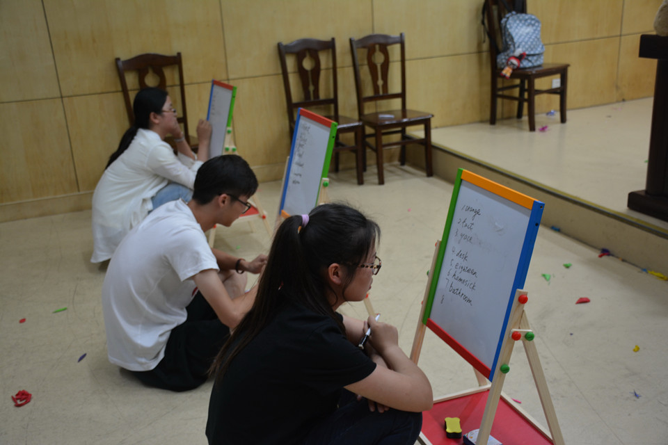 (张敏/文金玥/图)6月5日晚六点,由外语系团总支、学生分会举办的单词汇活动决赛在活动中心106顺利举行。本次活动邀请了来自12英语专业的王俊伟、周菲菲、顾佳慧等作为评委。大赛分为初赛与决赛,经过初赛的激烈比拼,30名选手脱颖而出进入决赛。比赛尚未开始,会场内便早已弥漫着浓烈的青春气息与活力。