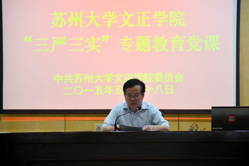 徐子良从“深刻领会‘三严三实’的丰富内涵和重要意义”、“认真查找和剖析‘不严不实’的具体表现和严重危害”、“以‘三严三实’作风推动学院事业新发展”以及“确保‘三严三实’专题教育抓出成效”四个方面讲授了党课。