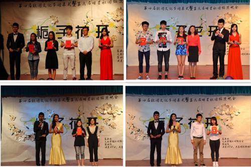 本次明星社团颁奖晚会共颁发包括“新锐社团”在内的五个奖项:珍珑棋社、粤语社、Free Soul滑板社荣获“新锐社团”,大学生法律咨询援助中心荣获“最佳开拓社团”,“最具活力社团”花落清野动漫社,助残志愿者服务协会、爱心社、FS演讲汇荣获“明星社团”,最具人气社团由创益社、FID舞协、辩论社获得。