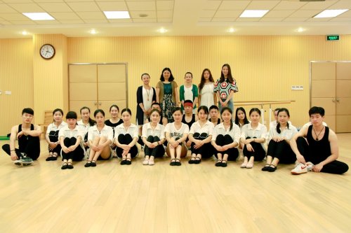 参加此次推介展示会的同学从五月份选拔之后,顶着时间紧、任务重的压力,利用课余时间投入紧张的排练,经过两个月的持续努力,终于完成了团体表演舞蹈的编排。赛前,副院长施盛威到形体房勉励大家,放松心态,享受过程,展现自我,赛出风格。
