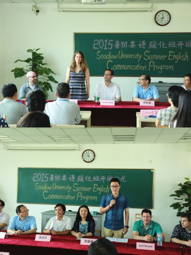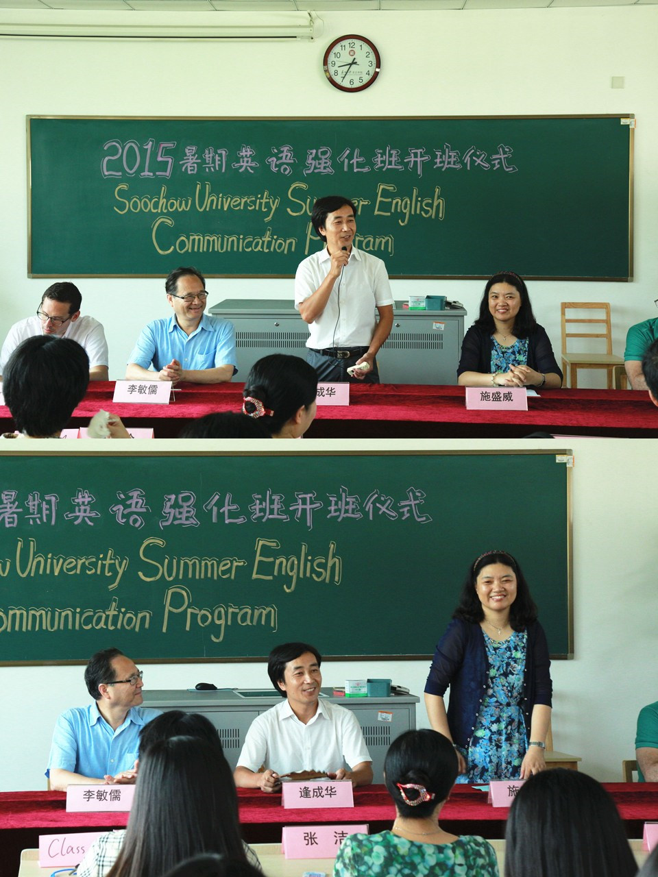 8月3日上午,由我院与美国俄亥俄州立大学、苏州大学文学院三方共同开设的暑期英语口语强化班开班典礼在教学楼4-306教室举行。俄亥俄州立大学教授团队领队李敏儒、唐山学院院长刘卫东、文学院党委书记逢成华与副院长张洁、我院副院长施盛威等相关领导出席了本次开班典礼。