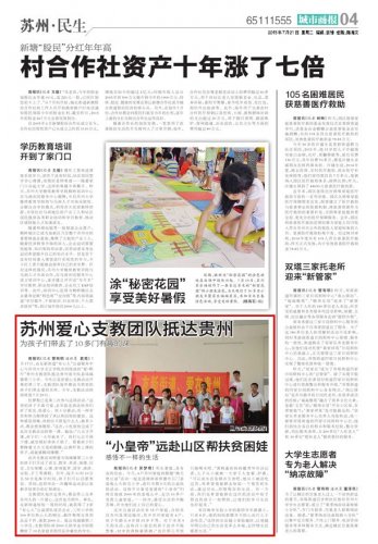 商报讯(记者管有明通讯员袁苑)7月17日,由友新街道“有心人”公益服务中心与苏州大学文正学院共同组成的“爱·黔行”贵州支教团队抵达贵州省天柱县凤城镇第三小学。今年已是该爱心支教活动开展的第三年,支教团队每年都会为那里的孩子们带去爱的关怀。今年,支教活动将持续到7月29日。