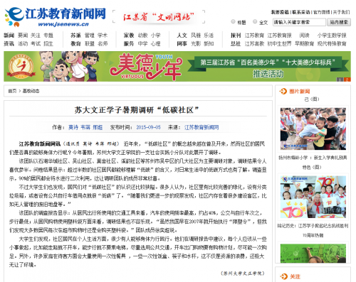 江苏教育新闻网讯(通讯员 莫诗韦蒋邢超)近年来,“低碳社区”的概念越来越在普及开来,然而社区的居民们是否真的能够身体力行呢?今年暑期,苏州大学文正学院的一支社会实践小分队对此展开了调研。